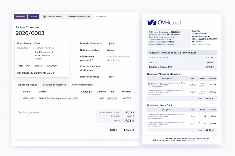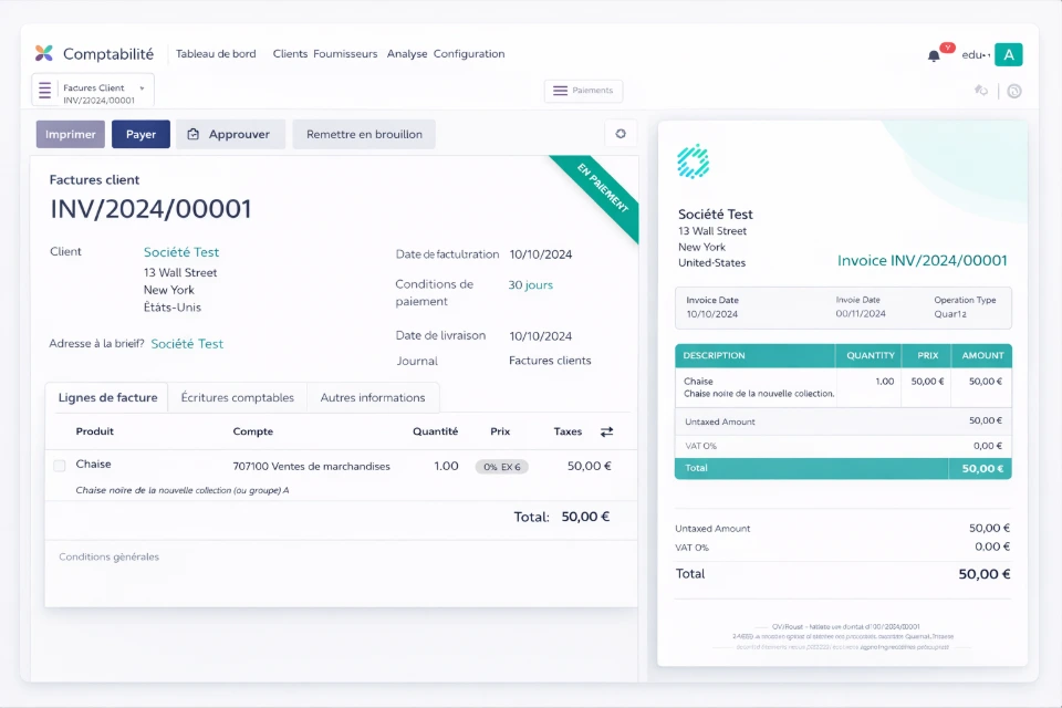 - Création de devis et factures électroniques personnalisées (conformes à Peppol)